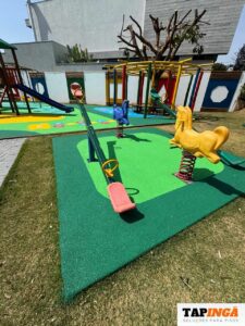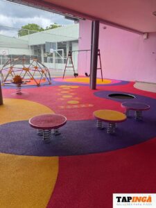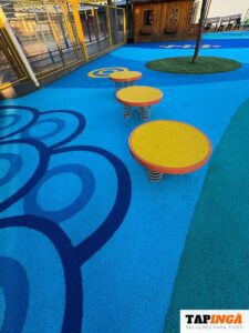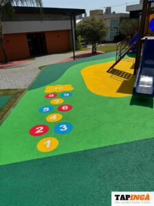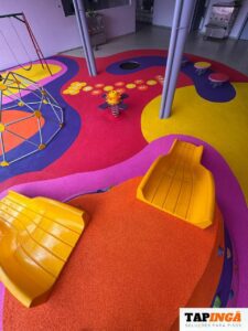 Este é um piso tecnológico, macio, proporciona isolamento acústico, absorção de impactos, fácil de limpar e tem alta durabilidade.